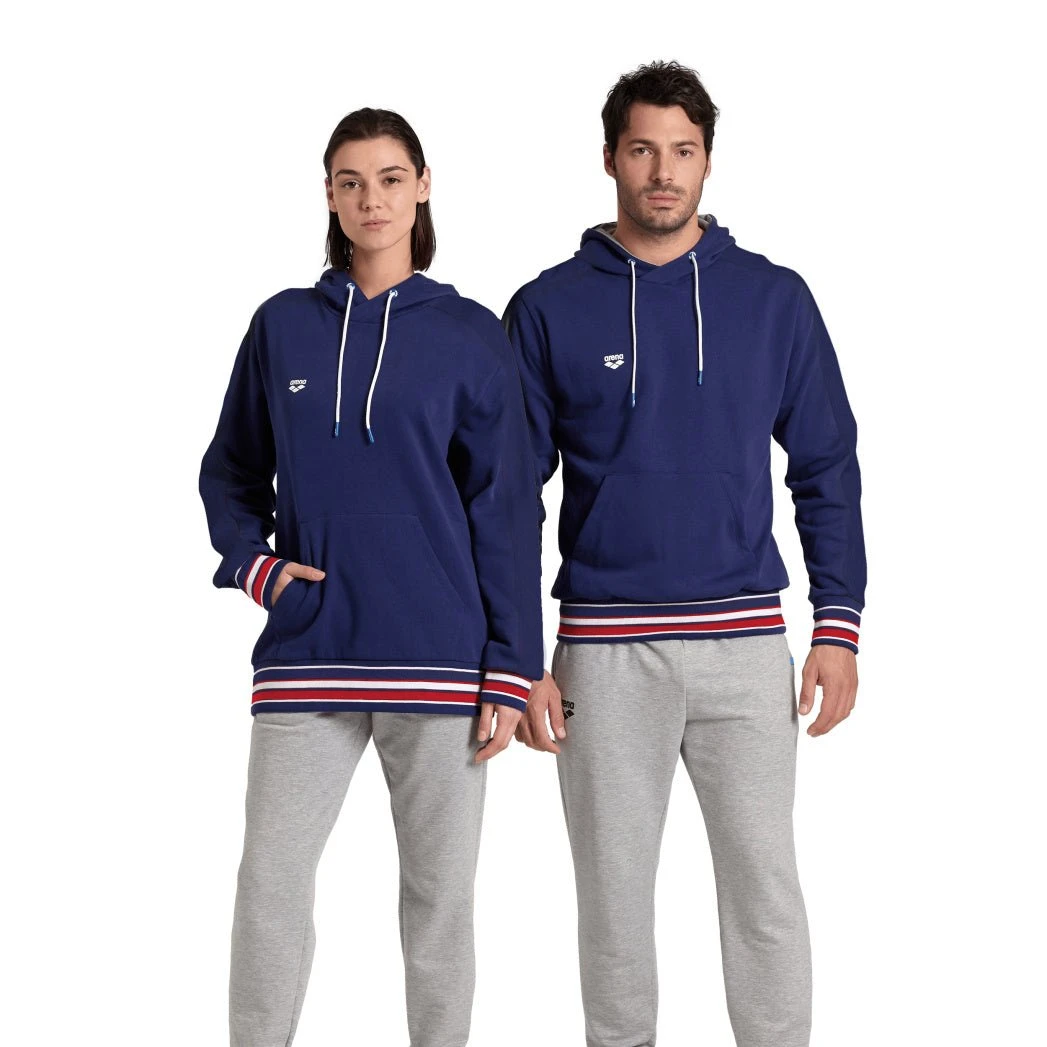 Elevate your streetwear game with our Arena Americana Hoodie. Made from premium fleece-backed cotton, this unisex style features our iconic logo stripe down each sleeve. Stay cozy and trendy with the matching sweatpants. The ultimate classic, now with a modern twist!