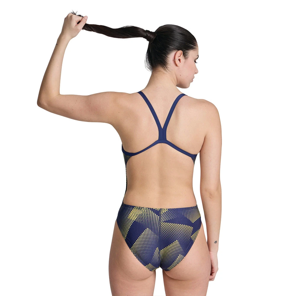 This Arena Halftone Challenge Back swimsuit is technically designed for maximum performance and comfort. The thin upper shoulder straps provide the coverage and support needed during races, while the full frontal lining offers a sense of security. With a wider middle back and medium-height leg cuts for maximum range of motion, this swimsuit is perfect for team unity and achieving success.