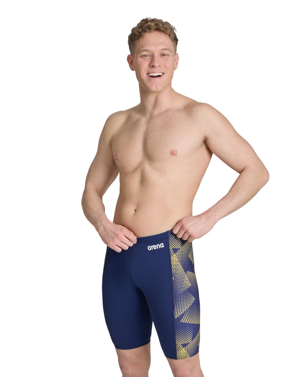 Take your swim training to the next level with the Arena Halftone Swim Jammer. Featuring an on-trend retro print, the Halftone Jammer is designed with a 17.7-inch outseam and comfortable front lining. An adjustable drawstring ensures a secure fit, while the durable MaxLife fabric construction offers long-lasting wear. Get ready to make a splash in this stylish and comfortable swim jammer.