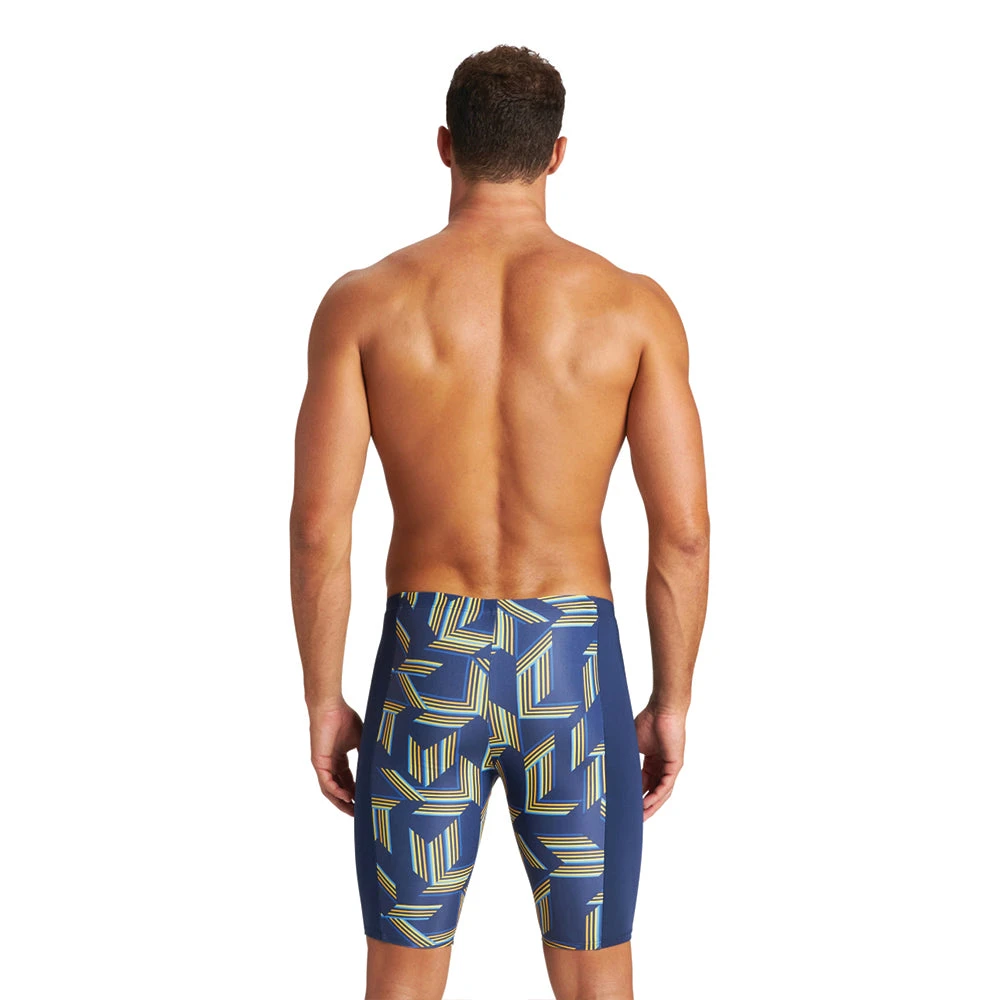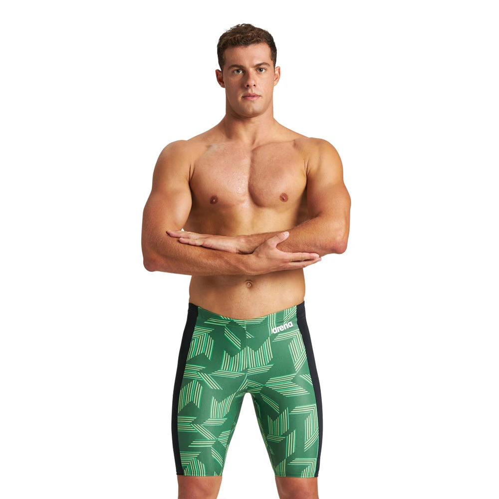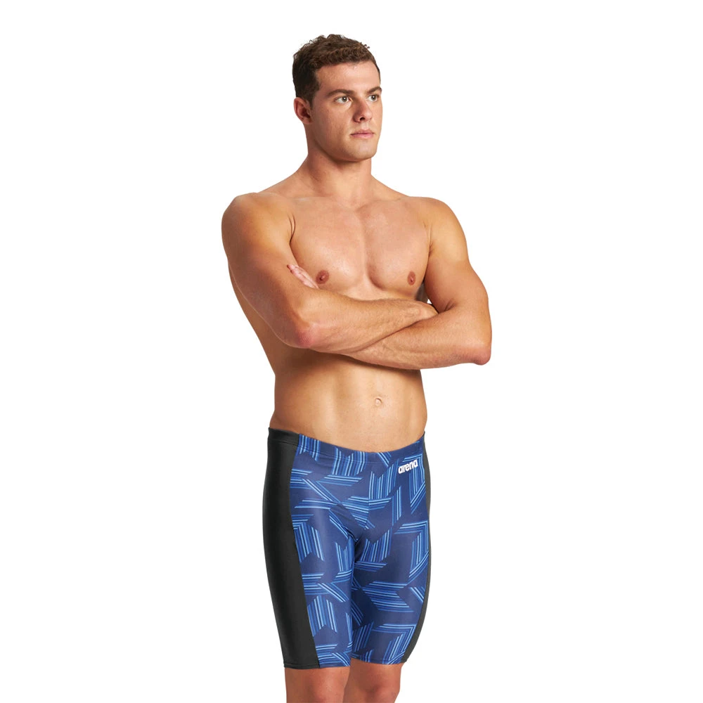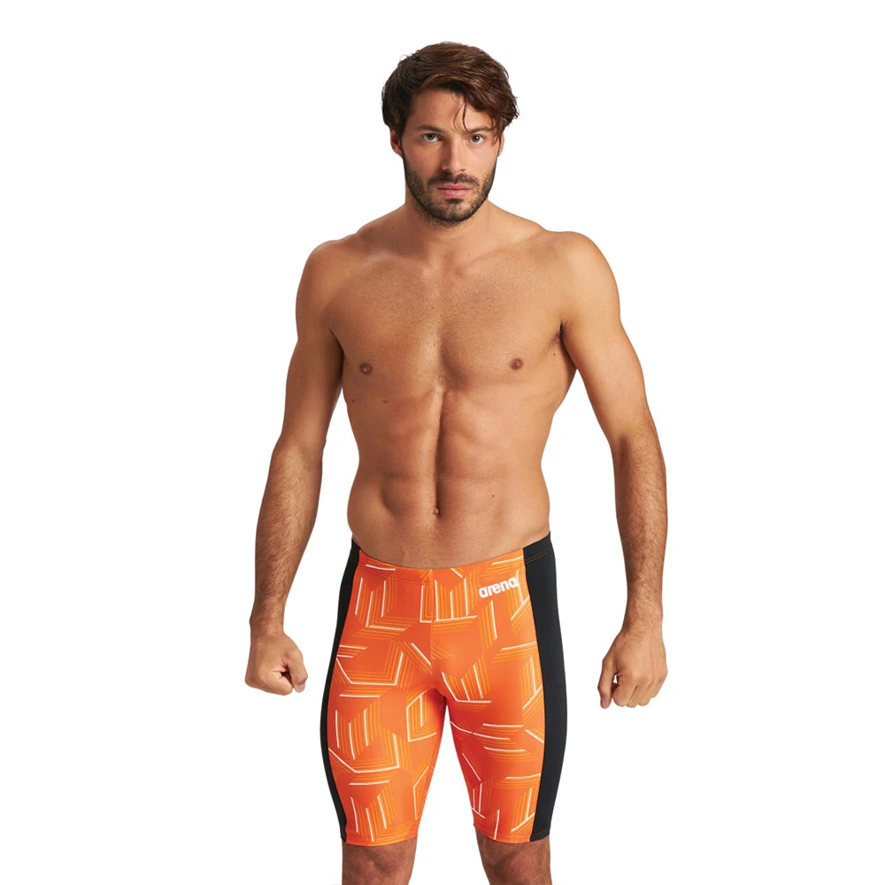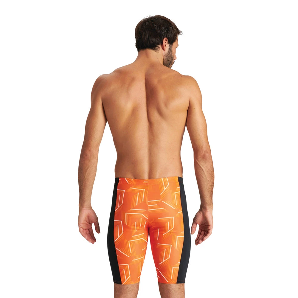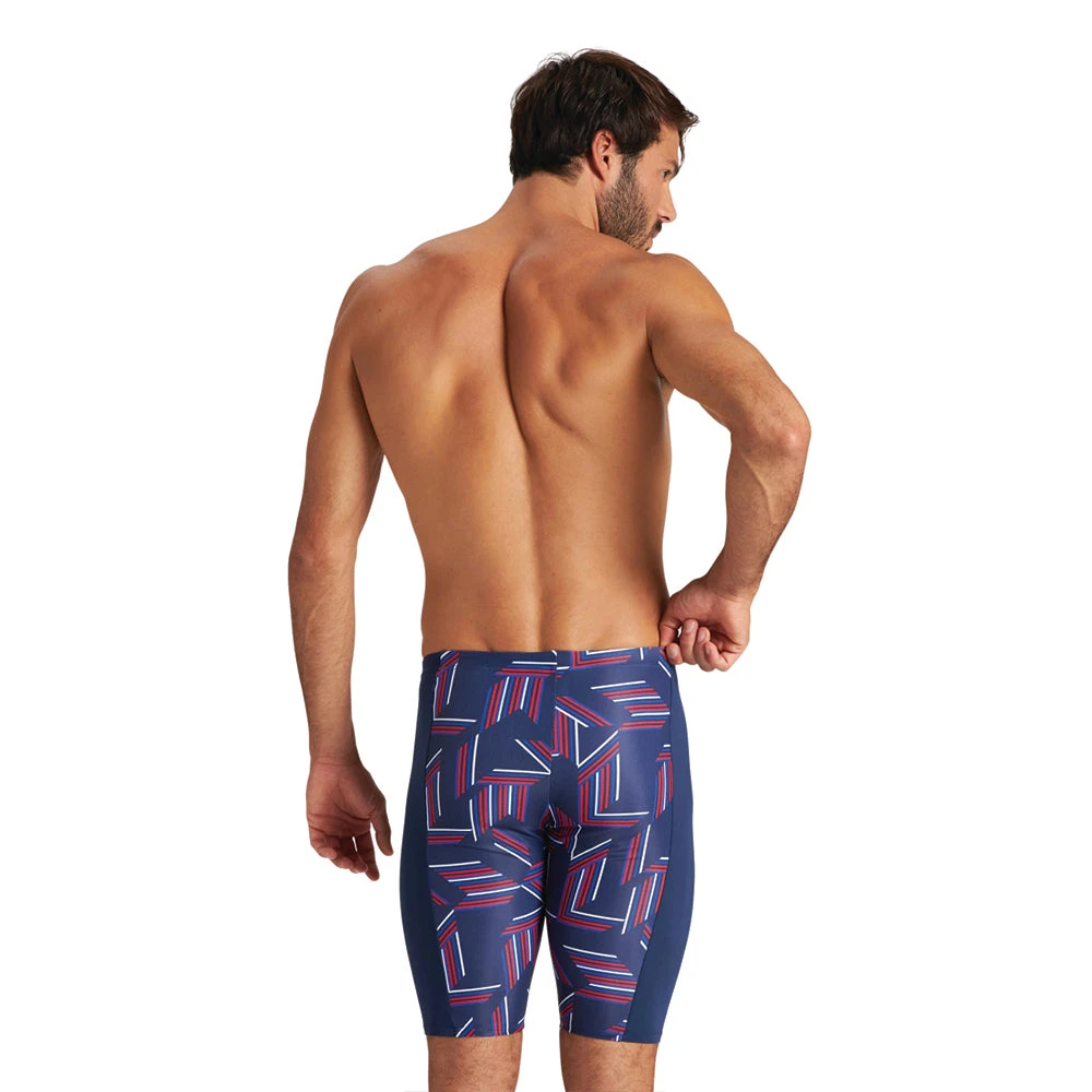 The Arena puzzled jammer is made with MaxLife technology. It is made to deliver maximum comfort and durability all season long. The maxlife material is chlorine resistant, quick drying, and has 50+ UV protection.
