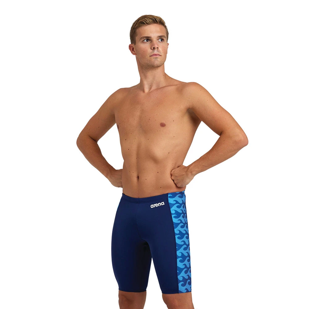 The Arena Ride The Wave Jammer is designed with all the features and comfort you need to achieve peak performance. Made with MaxLife Eco, this sustainable fabric provides maximum resistance to chlorinated water, superior durability, quick drying, and 50+ UV protection. The 17.7 in outseam is complemented with a comfortable front lining and an adjustable drawstring to ensure a perfect fit. Made from 50% recycled PET bottles, this jammer reduces CO2 and saves water.