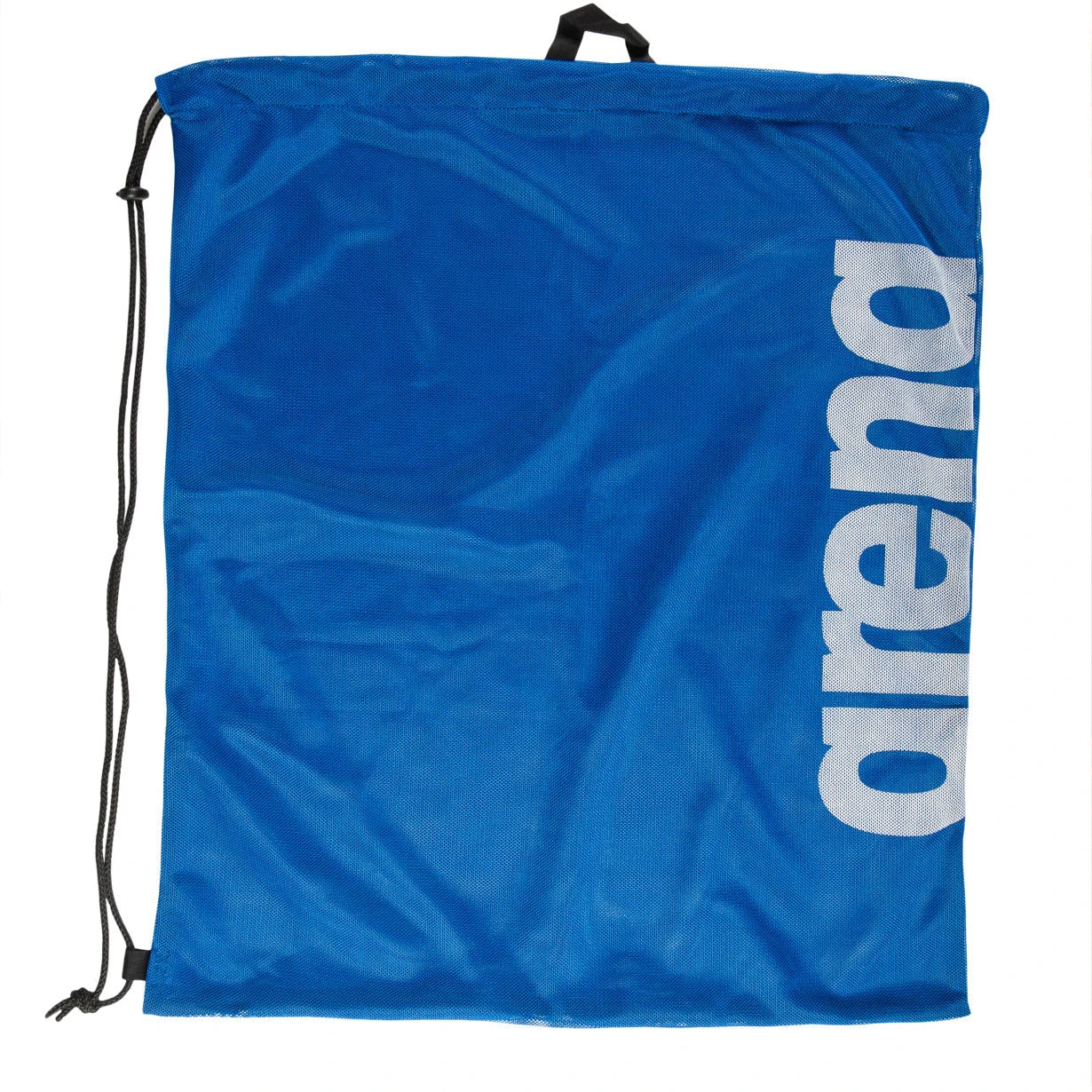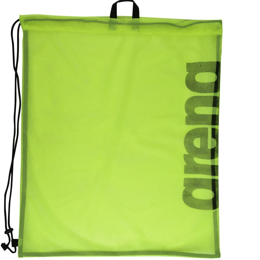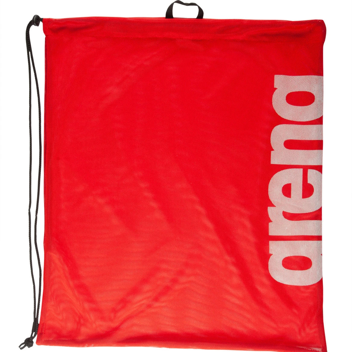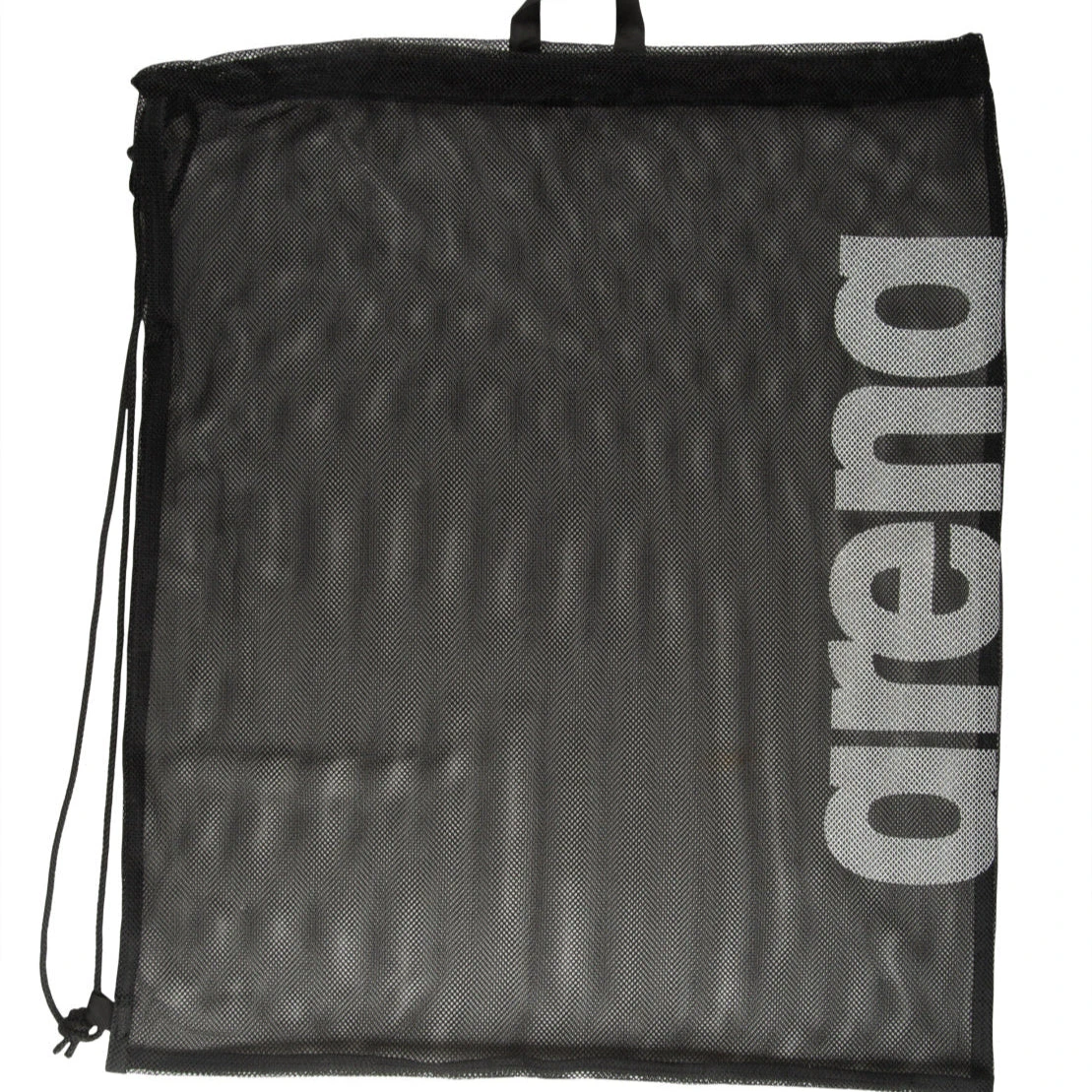 This spacious Arena Team Mesh Bag is perfect for transporting all your swim gear to the pool deck. Its increased size allows for easy customization for entire teams. With a practical handle, string stopper closure, and versatile cord straps, this durable polyester mesh bag is a swimmers favorite.
