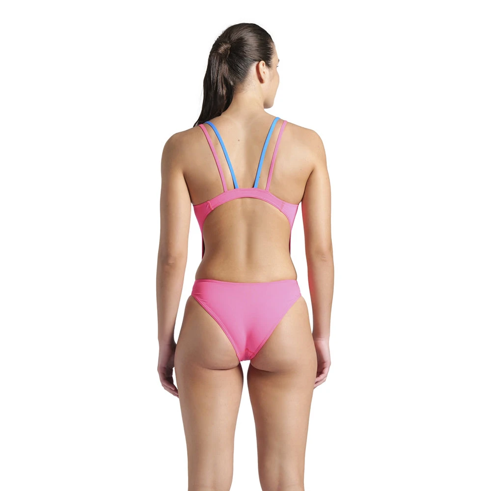 The arena Multi Solid Tech Back is designed for intense and competitive swimmers. Made with an extremely chlorine-resistant fabric, it protects skin from the sun and dries quickly. The open back, thin straps, and high-cut leg offer maximum freedom of movement, a great feel in the water, and a flattering appearance. Perfect for those who demand durability and performance.