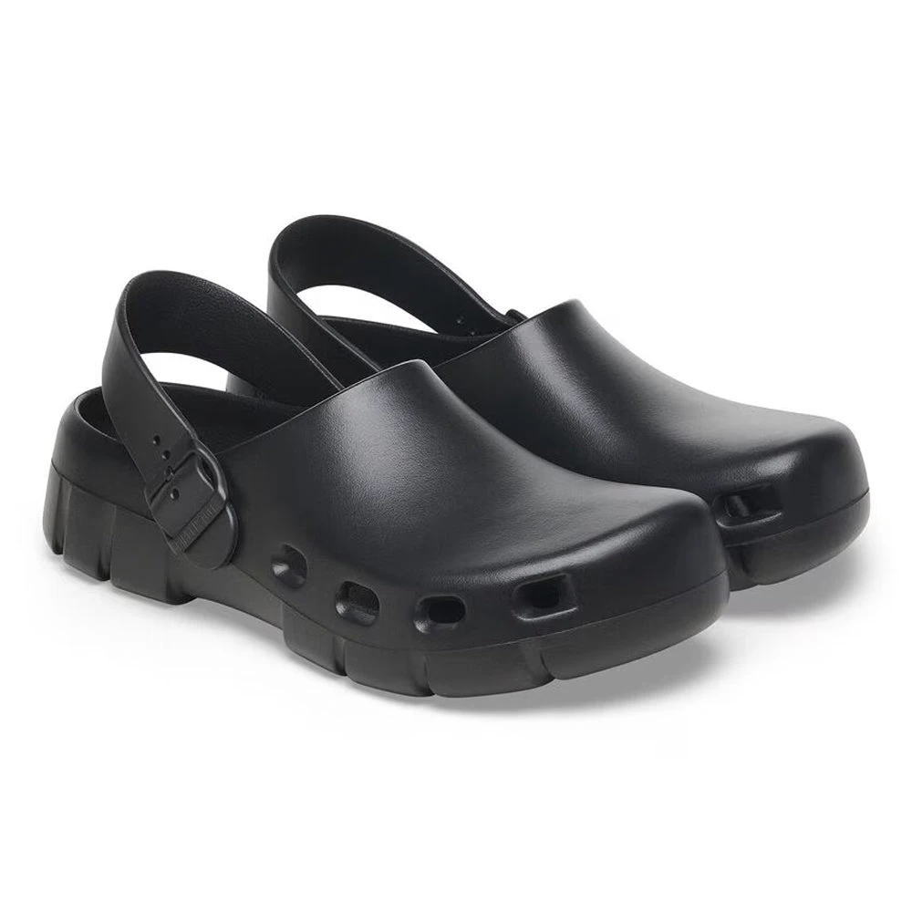 Introducing the Birki Flow, the perfect post-sport recovery clog. With a contoured BIRKENSTOCK® footbed made from lightweight EVA, this water-friendly design features breathable vents and is washable for easy maintenance. German-made with classic BIRKENSTOCK® design details. Experience ultimate comfort and style in every step.