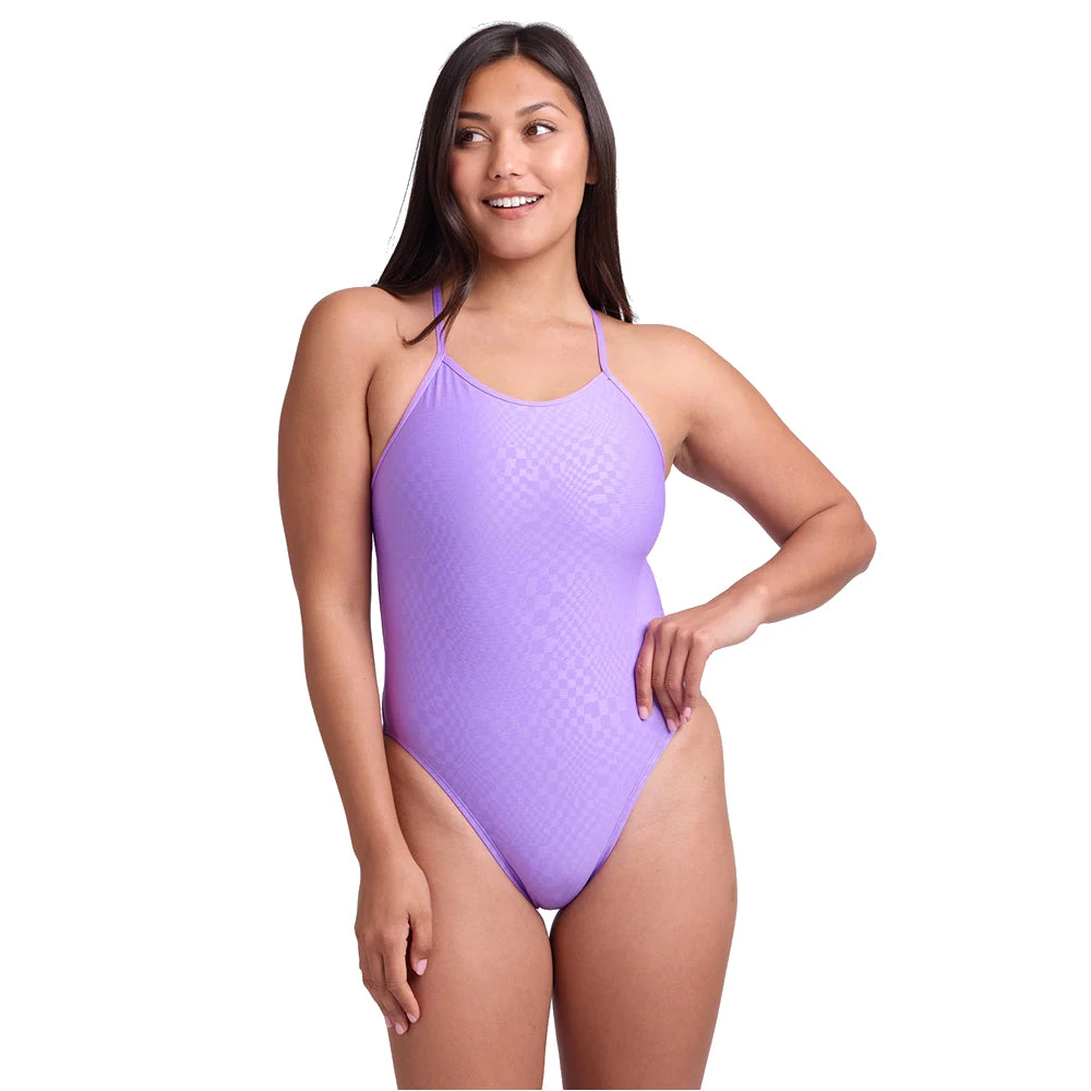 Dive into style with our Jolyn Brandon Embossed swimsuit! The adjustable one-piece features a continuous back band for a perfect fit and a high neckline for extra coverage. Stay sleek in the water with its rounded shape and subtle binding loop. Available in smaller sizes with a modest fit. Perfect for all water activities!