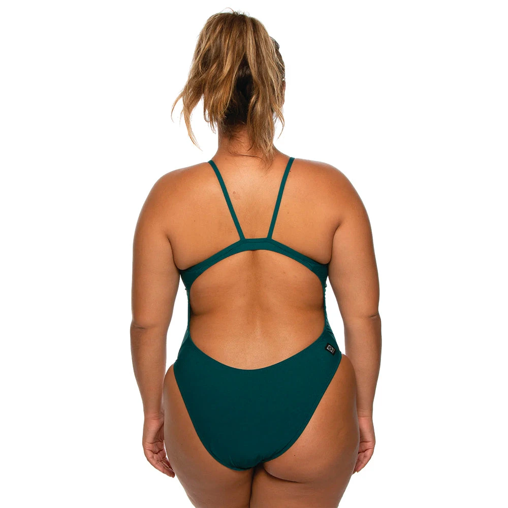 The jolyn chevy solid onesie is the perfect suit for someone who wants a little more coverage. Featuring a slightly scooped neckline, fixed back straps, filled in sides, and classic bottom coverage this is the ultimate training suit. Made with long lasting chlorine proof material, this suit will last swim after swim.