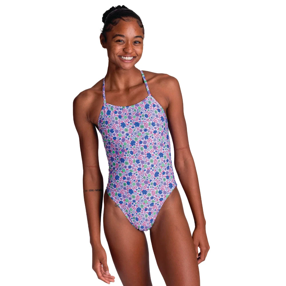 Make waves and turn heads in the Jolyn Gavin Tink tie-back swim onesie. With a four-strap cut out detail and medium/full coverage, this suit is perfect for all your aquatic adventures. The adjustable back straps and chlorine-proof, two-way stretch fabric provide comfort and durability for any water activity. Dive into style and comfort with the Gavin onesie!