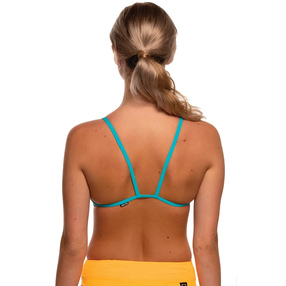 Introducing the Jolyn Malia Bikini Top! Designed with minimal straps and a scoop neck, this top is perfect for basking in the sun or staying active. With medium coverage, reinforced stitching, and chlorine-proof fabric, the Malia top doubles as a bralette for all your summer adventures. Stay stylish and comfortable with 2-way stretch and a tagless design.