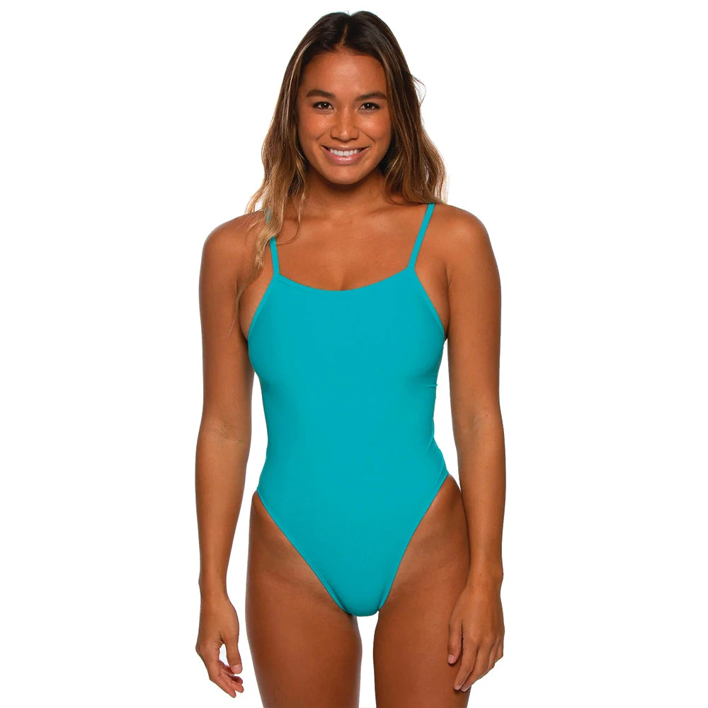 The jolyn perry solid onesie is the perfect suit for someone who wants a little more coverage. Featuring two over the shoulder straps that criss cross across the back, fixed back straps, cut out detail along the ribcage, and classic bottom coverage this is the ultimate training suit. Made with long lasting chlorine proof material, this suit will last swim after swim.