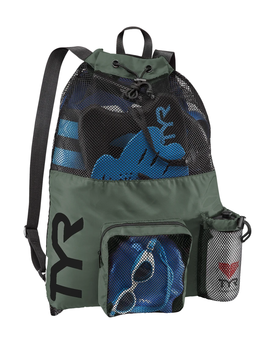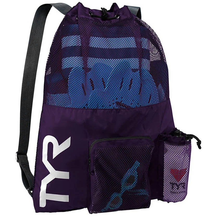 The TYR Big Mesh Mummy Backpack boasts a 20% larger design, perfect for storing swim and workout gear. It features a roomy main compartment and mesh venting for quicker dry time and drainage. Over-the-shoulder straps allow for hassle-free transport, while barrel-lock closures make accessing gear easy. Lightweight and practical, this athletic backpack also includes a side zipper pocket for organization and a built-in water bottle holder for easy hydration. Select from a variety of vibrant colors to suit your style!