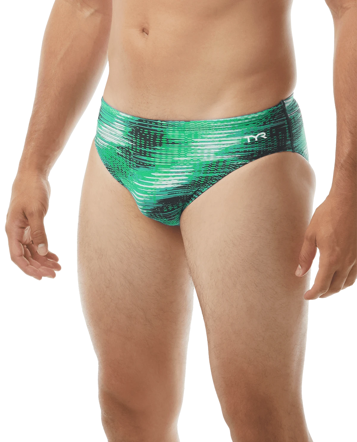Constructed with TYR’s most durable textile, Durafast Elite – the Surge Racer utilizes high denier poly fiber and innovative circular knit construction to combine the stregnth and colorfastness of polyester with the comfort of spandex. TYR racers provide a fitted brief style and adjustable drawcord waist; ideal for athletes who want minimal coverage and comfortable support every swim.